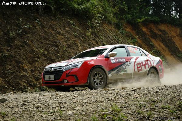 由中国制造的量产版混动车-比亚迪秦第一次出现在拉力赛场上,尽管收到过重的车身和不尽成熟的改装等不利因素掣肘着。