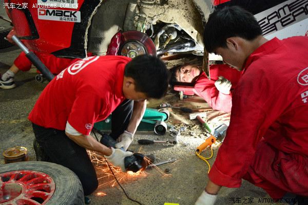 在途径维修基地时,比亚迪梦想车队的技师们仍然在对赛车的底护板进行细节处理。之前堪路时候因为车重的原因,造成底护板边形干涉到前副车架和散热下水管的问题必须得到解决。